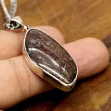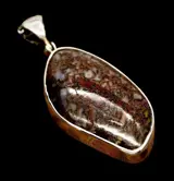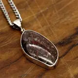 Fantastische zilveren hanger, met een zeldzaam opaal gemaakt dinosaurusbot, in rood en blauw, behorend bij een Atlasaurus-bot, gevonden in de fossiele bedden van Utah.