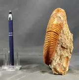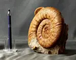 De ammoniet meet 16 cm. Het heeft uitstekend voorbereidingswerk en een goede conservering, zelfs als de achterkant versleten is.