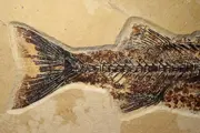 Mooie Mioplosus labracoides vis. Dit is een van de minder algemene vissen van de Green River Formation en het exemplaar is vrij groot voor soorten. De kalkstenen plaat wordt ondersteund met multiplex om schade tijdens verzending en daarna te voorkomen. Er is een kleine restauratie langs een gelijmde barst te zien. De fijne details van de tanden, schubben, vinnen en wervels zijn erg mooi.