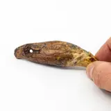 Extremely rare, drilled cave bear pendant, dating to the Aurignacian period. This interesting decorative pendant was found in the central European cave systems and more than likely belonged to early Homo Sapiens.