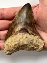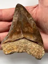 Kwaliteit Megalodon-tand, met goede punt, kartels en glazuur