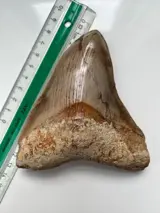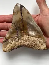 Kwaliteit Megalodon-tand, met goede punt, kartels en glazuur
