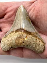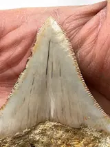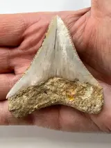 Kwaliteit Megalodon-tand, met goede punt, kartels en glazuur