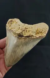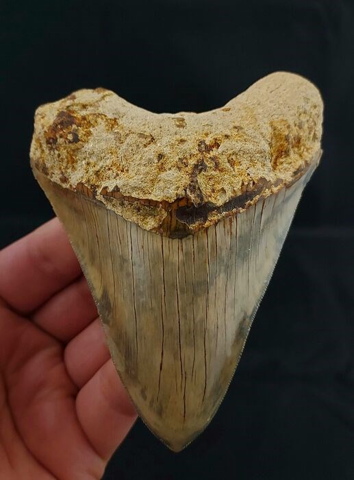 Een werkelijk prachtige groen grijze GROTE MEGALODON tand uit de steengroeve te Indonesie.