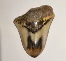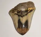 Deze bijzondere tand is afkomstig van een Megalodon, een voorouder van de Witte Haai die tot wel 20 meter groot kon worden!