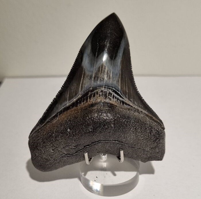 Prachtige, zeer unieke tand van de Megalodon op standaard.