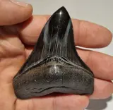 Deze bijzondere tand is afkomstig van een Megalodon, een voorouder van de Witte Haai die tot wel 20 meter groot kon worden!