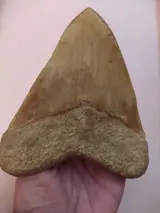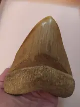 Enorme Megalodon tand van 15 cm en met een spectaculaire kleur!.
