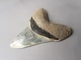 De Megalodon haai (Otodus Megalodon) is de laatste jaren, mede door documentaires en films, in populariteit toegenomen. En dat is ook niet gek: het is namelijk een gigantische haai die tot wel 20 meter lang kon worden en 60.000 kilo kon wegen! De Megalodon is dan ook één van de grootste roofdieren (vissen) dat ooit heeft geleefd. De tanden van de Megalodon zijn nagenoeg de enige fossielen die gevonden zijn van deze prachtige soort, en die tanden spreken boekdelen. De tand zelf is bijna perfect, de bourlette en wortel zijn gerestaureerd. De kleuren van dit exemplaar zijn adembenemend en worden niet vaak gezien.