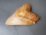 De Megalodon haai (Otodus Megalodon) is de laatste jaren, mede door documentaires en films, in populariteit toegenomen. En dat is ook niet gek: het is namelijk een gigantische haai die tot wel 20 meter lang kon worden en 60.000 kilo kon wegen! De Megalodon is dan ook één van de grootste roofdieren (vissen) dat ooit heeft geleefd. De tanden van de Megalodon zijn nagenoeg de enige fossielen die gevonden zijn van deze prachtige soort, en die tanden spreken boekdelen. De tand is gebroken gevonden en netjes gelijmd.