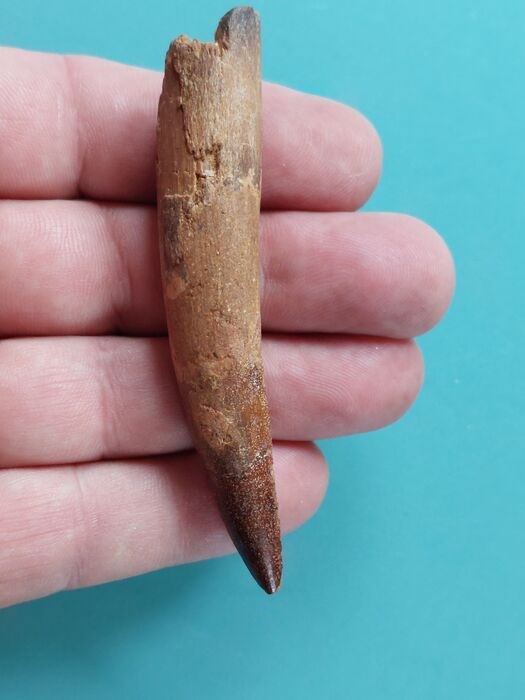 Mooie, zeer grote, perfect bewaard gebleven 88 mm spinosaurus dinosaurustand in perfect roodbruin kleurbehoud