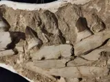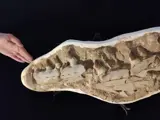 Deze ongelooflijke fossiele vondst toont een Prognathodon-kaakbeen.