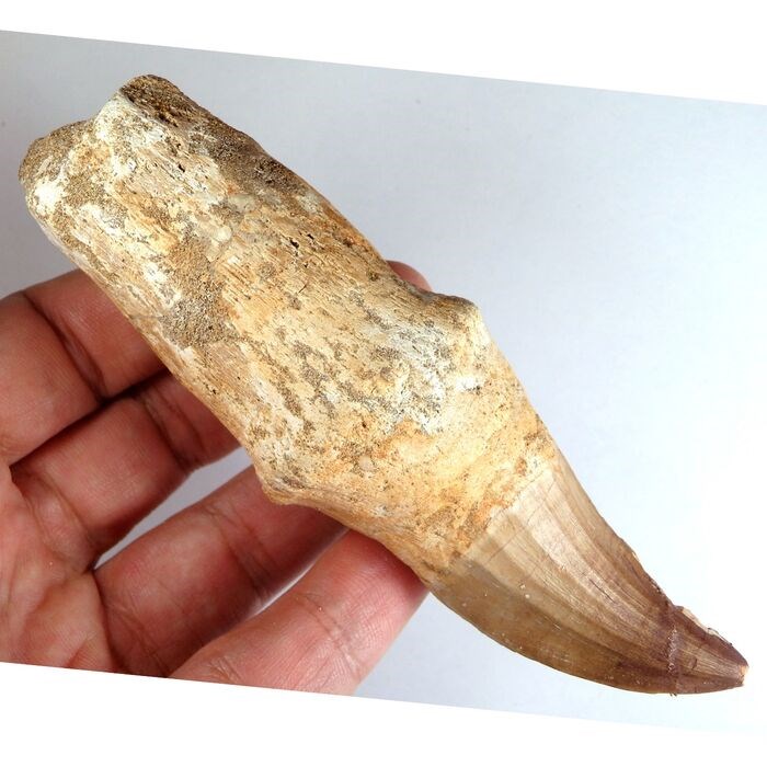 Mosasaurus tand - ZELDZAAM - Complete tand met wortel -