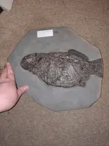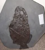 Grote Dapedium sp. van de Posidonia-leisteen van Holzmaden. Geweldig gebit, geweldige schubben en prachtig geprepareerd. Is ooit kapot geweest, maar is vakkundig gelijmd. De rugvin is toegevoegd, verder is alles volledig origineel.