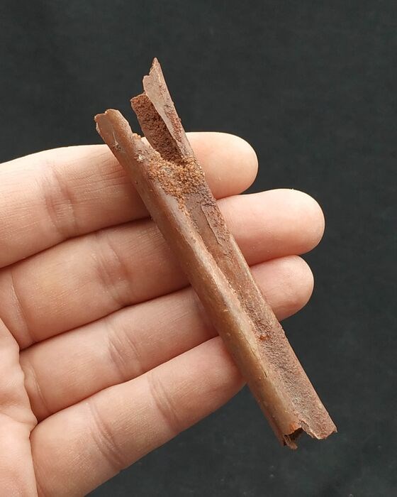 Bone fragment of cretaceous azdarchid pterosaur.