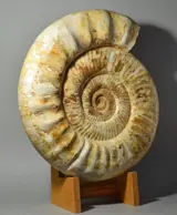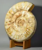 Een uitstekende gepolijste ammoniet Prososphinctes met prachtige witte schelp. Dik decoratief exemplaar met geweldige binnenkransen. Kleine gebieden kunnen zijn opgevuld.