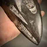 Vervolgens is de orthoceras door meervoudig schuren gepolijst tot een prachtige hoogglans.