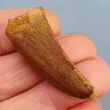 Tand 3: Dinosaurus; Spinosaurus maroccanus. Deze tand heeft een afmeting van 3,5 cm. Prachtig patina, Goede kwaliteit.