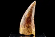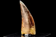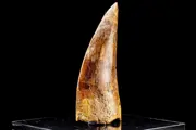 Het is een 83,4 mm lange tand van de gigantische roofdinosaurus Carcharodontosaurus saharicus, die vaak wordt vergeleken met de T-Rex, maar waarvan men denkt dat hij nog groter is.