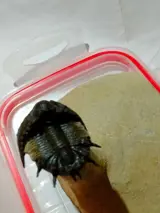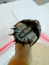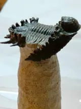 Een zeldzame Akantharges mbareki trilobiet van topkwaliteit. Een zeldzame soort trilobiet. Een zeer sierlijk ontwerp met doornen en knobbeltjes op zijn cephalon en pygidium! Deze soort lijkt gepantserd of ontworpen om ter bescherming op te gaan in zijn omgeving. Uitstekende conservering van de schaal en de wervelkolom. Goede grootte. Een zeer zeldzame soort! Een Midden-Devoon (395 mya) trilobiet uit de regio Tinejdad, Atlas Mts., Marokko. Authenticiteit gegarandeerd. Een zeer ongebruikelijke soort trilobiet