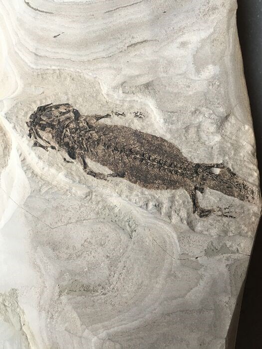 Twee goed bewaarde branchiosauriërs Apateon pedestris uit het Onder-Perm, Roltliegend uit Odernheim, Rijnland-Palts, Duitsland.