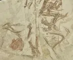 Zeldzaam Confuciusornis fossiel, in het goed gerestaureerde fossiel is de glans van het botoppervlak duidelijk zichtbaar, het botoppervlak is niet bedekt met beschermend middel, het is een volledig kaal echt fossiel