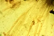 Deze prachtige, extreem fijne veerstralen zijn afkomstig van kleine loopvogels zoals Deinonychus of Velociraptors.