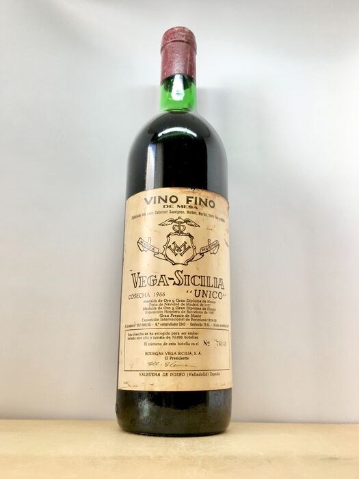 ¡Auténtica fles wijn VEGA SICILIA UNICO de 1966 embotellado in 1981. Está en muy buenas condiciones. Gran lujo y oportunidad en tus manos para sorprender a amigos and familiares, como inversie of colección. Tiene een grote herwaardering met el paso de los años. Het nivel van de vloeistof is bueno. De etiquette en perfecte voorwaarden y su cápsula intacta en excelente estado.