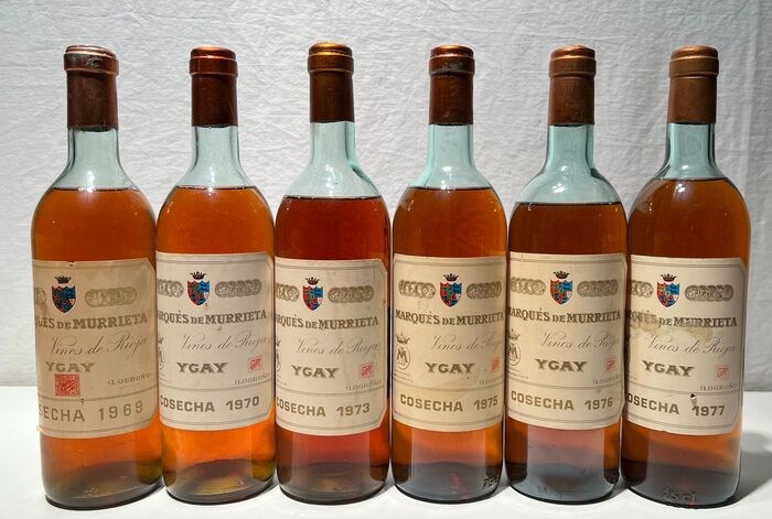 Magnificas botellas de Marques de Murrieta Ygay reserve, verticale de blanco's de muy difícil obtención en un estado de conservación bueno,corcho, etiqueta, nivel de vino correctos.