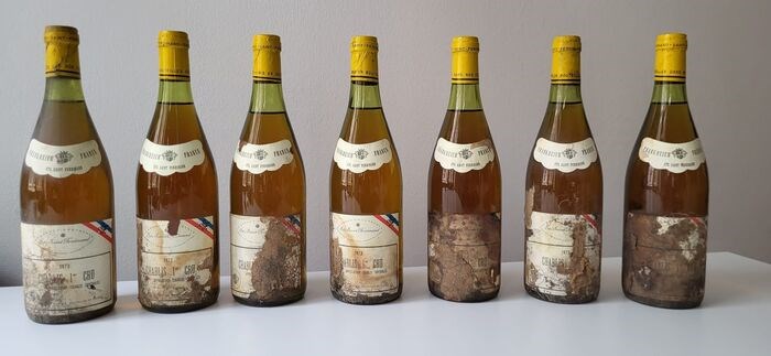 Ik bied een pakket aan van 7 flessen van een zeer zeldzame 50 jaar oude witte wijn: Chablis, 1er cru, 1973, EST. ST. FERDINAND.