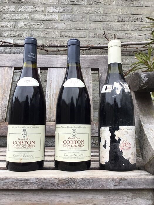Drie flessen Corton Clos des Meix, Domaine Comte Senard, geïmporteerd door Verlinden, ‘s Hertogenbosch: