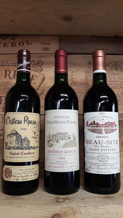 zeer mooie serie Saint-emilion grand cru van geweldige jaargangen waaronder de 90 en een gerenommeerd Château de Saint-Estephe in cru Bourgeois van een geweldige vintage van 89, zeldzame flessen die tegenwoordig op de markt te vinden zijn, prachtige... très belle suite de Saint-Emilion grand cru op grand millésimes don't le 90 et un Château renommé de Saint-Estephe en cru Bourgeois sur grand millésime 89, rares bouteilles à trouver aujourd'hui sur le marché, splendides...