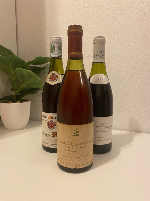 3 vintage Bourgondische wijnen van Clos de Vougeot en Chassagne-Montrachet, goed bewaard gebleven.