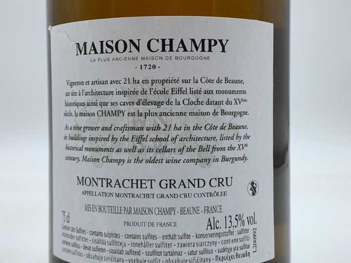 1991 Montrachet Grand Cru - Maison Champy - Bourgondië - 1 Fles (0,75 liter)