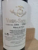 Ik presenteer u een prachtige fles rode wijn Vega Sicilia Único vintage 1994 in perfecte staat. 96/100 punten Parker. Volledig intact, leesbaar label. Volledig intacte metalen capsule. Fles van 0,75cl. 13,5 % vol. Onberispelijk. Altijd bewaard in een privé kelder.