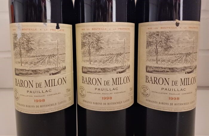 1998 Baron de Milon - Pauillac - 3 Flessen (0.75 liter)