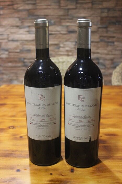 2 flessen Pago de los Capellanes parcela "El Picón", uit Ribera del Duero (Spanje). Exclusieve rode wijn uit een specifieke streek van Pago de los Capellanes velden. Etiket en vulniveau in perfecte staat.