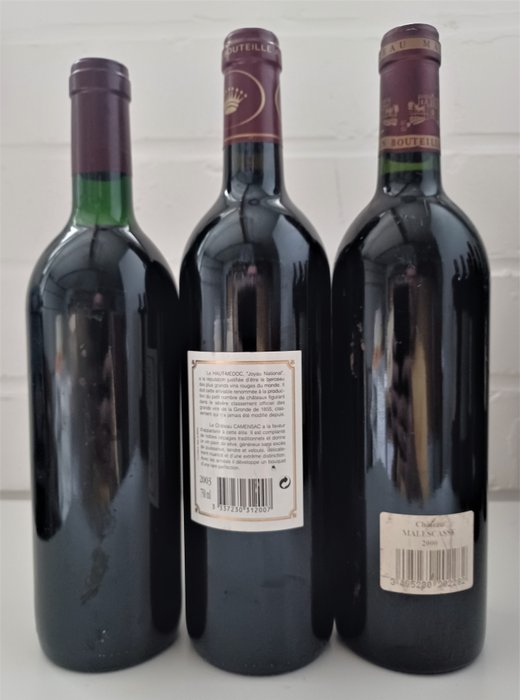2003 Château Camensac, 2000 Château Malescasse & 1985 Château Caroline - Bordeaux - 3 Flessen (0.75 liter)