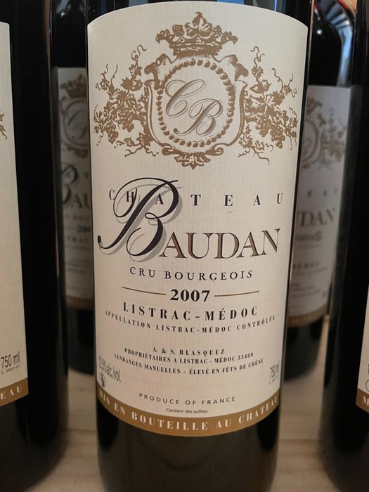 12 bouteilles de château BAUDAN 2007 in Haut Médoc ( LISTRAC)