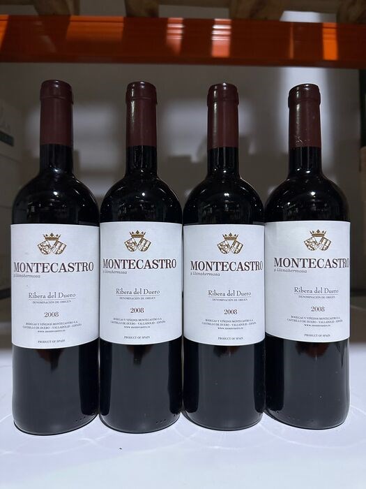 4 flessen Montecastro 2008 in perfecte staat, etiketten in goede staat.
