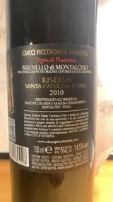 Ciacci Piccolomini d'Aragona - Brunello di Montalcino - Vigna di Pianrosso - Riserva Santa Caterina d'Oro 2010.