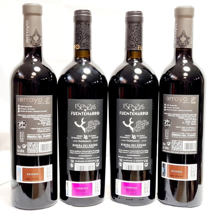 Esenzias by Fuentenarro 2018, een rode wijn uit Ribera del Duero 18 maanden gerijpt in 100% nieuwe Franse eik. In de mond is het elegant, delicaat en smakelijk.