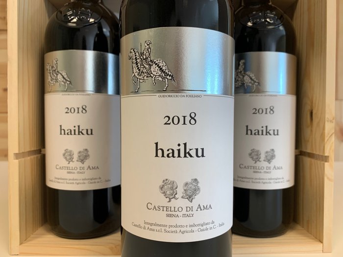 Haiku è un nuovo vino che racchiude in se quei principi di franchezza, profondità, semplicità e naturalezza che caratterizzano tutta la produzione del Castello di Ama. Il nome Haiku deriva da un tradizionale componimento poetico originario del Giappone composto di tre versi. E' una poesia dai toni semplici senza alcun titolo, la più corta del mondo, che elimina fronzoli lessicali e trae la sua forza dalle suggestiei della natura e delle stagioni. Data la sua brevità, la composizione richiede una grande sintesi di pensiero e d'immagine.