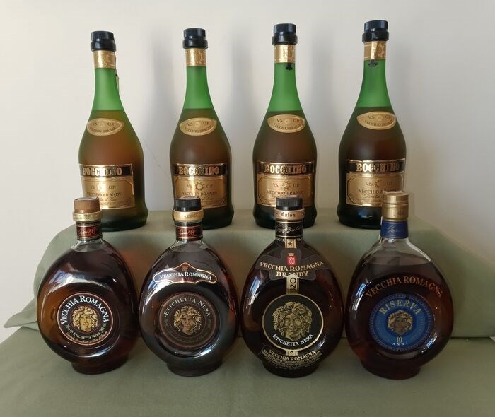 Mooie partij gemixt Italiaans van Bocchino en Vecchia Romagna. De flessen zijn erg oud en goed bewaard gebleven, zelfs de vloeistof binnenin is op een optimaal niveau. Veel dat fans van de oude Italiaanse en Franse brandewijn zeker zal fascineren en tevreden zal stellen. Alle flessen zijn tevens voorzien van een bewaardoos.