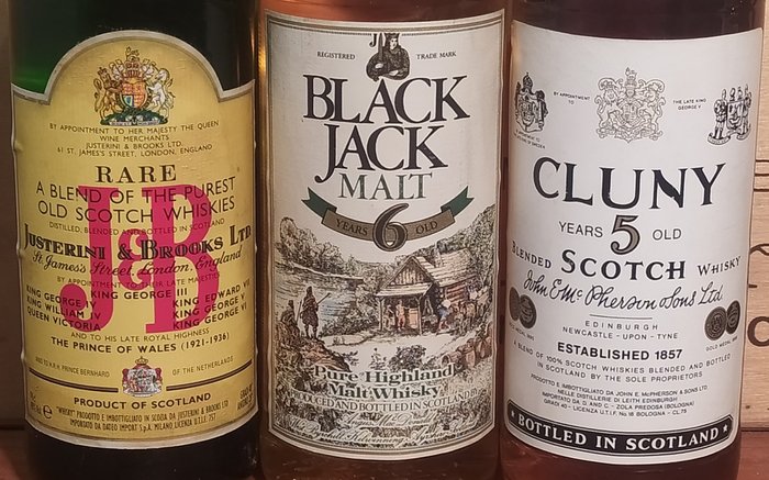 - Black Jack Pure Highland Malt-whisky - Gold Label Scotch Whisky 12 jaar -Cluny Blended Scotch whisky 5 jaar -Black Crow Original Old American Whiskey 3 jaar -J&B zeldzame Schotse whisky