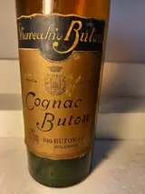 zeldzame en oude 'Cognac' fles geproduceerd door Distillery Buton in Bologna (Italië). Geen inhoud en alc op het etiket. De imperfecties op het glas van de fles suggereren een semi-industrieel glas van begin 1900