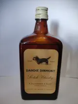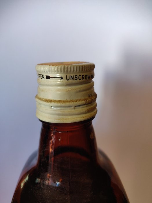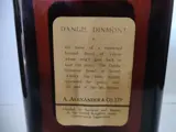 Een fles Dandie Dinmont Scotch whisky, geproduceerd door A Alexander & Co., Ltd. Deze fles is afgesloten met een Securo-dop sluiting. We schatten dat hij begin jaren zestig is gebotteld.