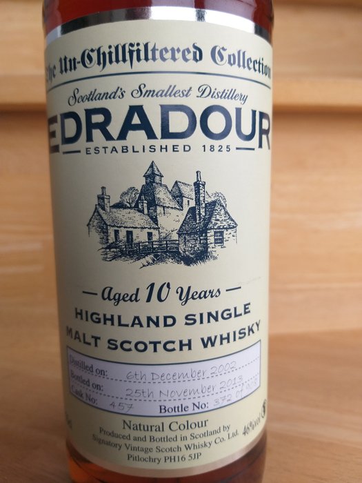 1 fles Edradour signatory vintage 2002 natuurlijke kleur in originele blikken doos.