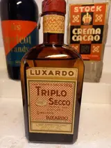 6 Likeurenfles van Italiaanse distilleerderij: Apricot Brnady SIS, Triple sec ILLVA (zeldzaam - dezelfde producent van Amaretto di Saronno); Crema Cacao-bouillon; Genziana Todisco; Elixer china ILS; Triplo secco Luxardo - alle flessen hebben een metalen sluiting met een kleine ster uit de jaren 50