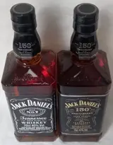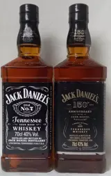 2 verschillende flessen Jack Daniel's met speciale labels: "150th anniversary of the Jack Daniel's distillery" # beide gebotteld in 2016.